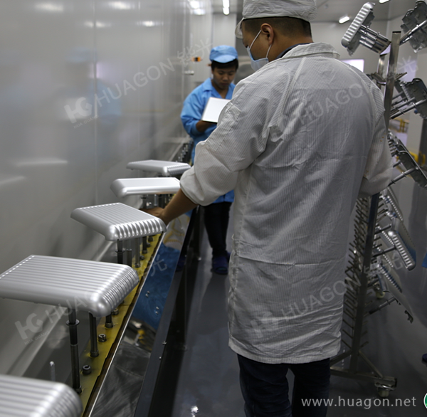 上料-手動靜電除塵-素材預熱-自動靜電除塵-自動噴涂-靜置-烘烤-冷卻-下料